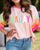 Letter Graphic Color Block Round Neck Half Sleeve T-Shirt